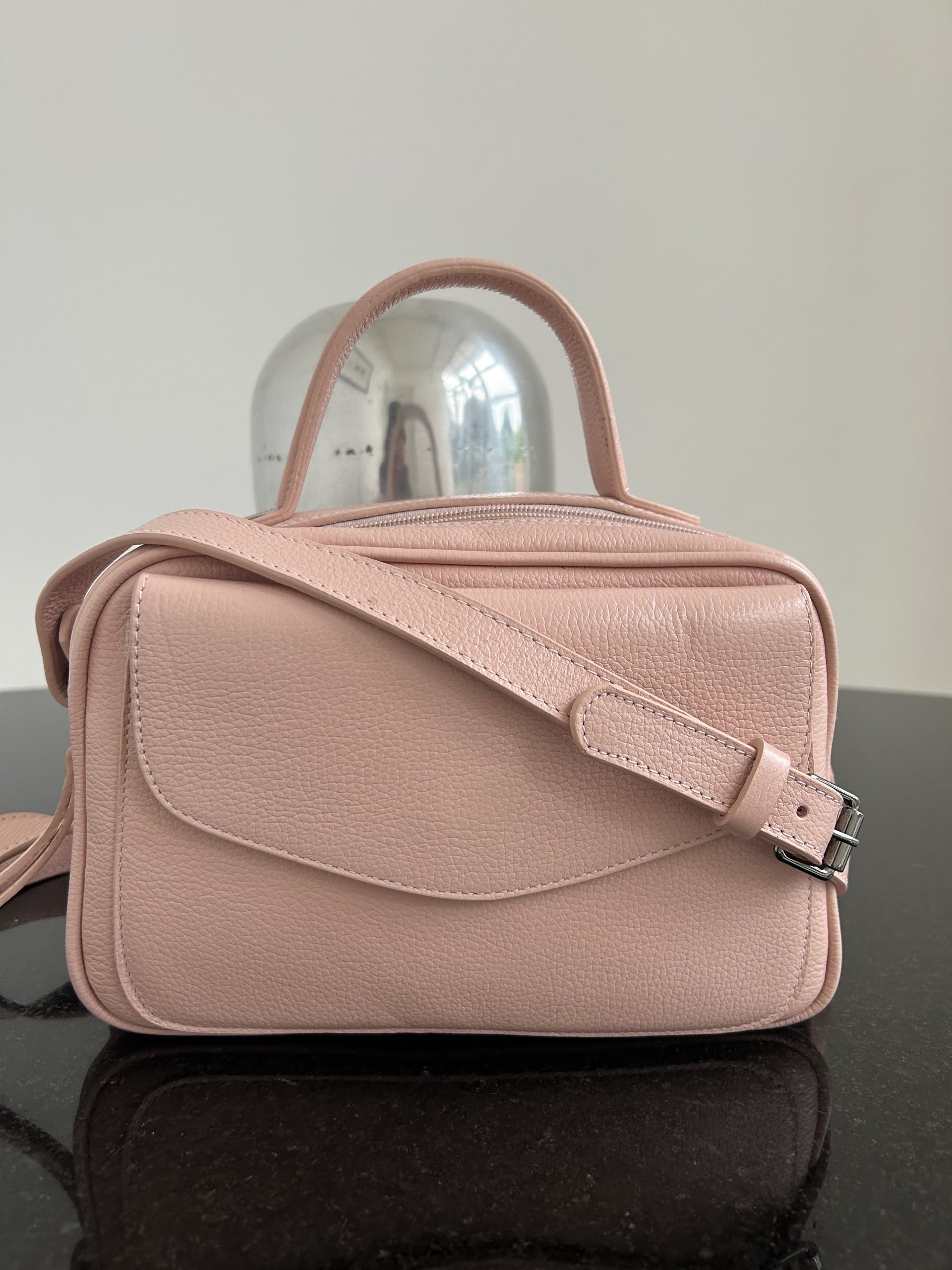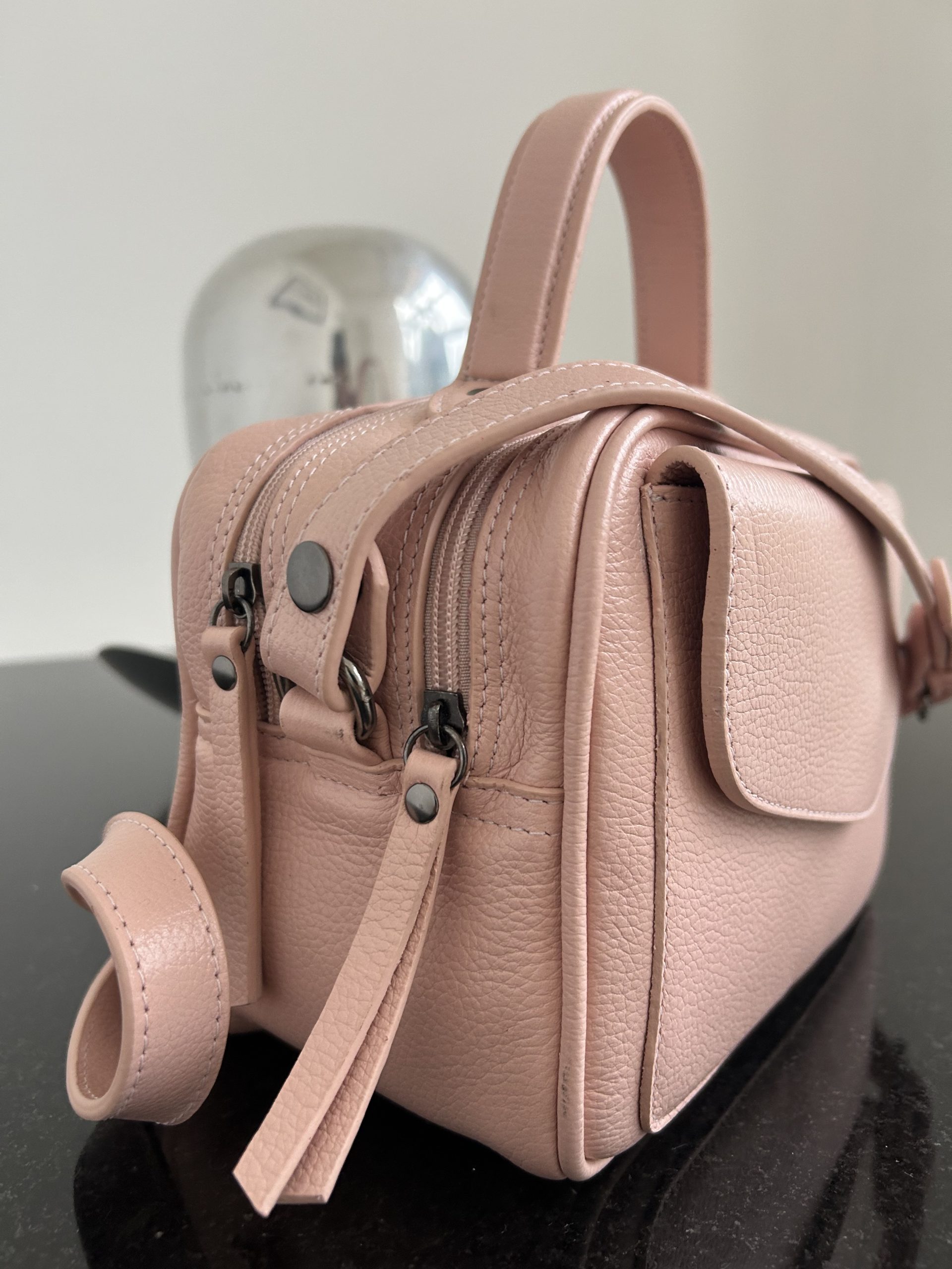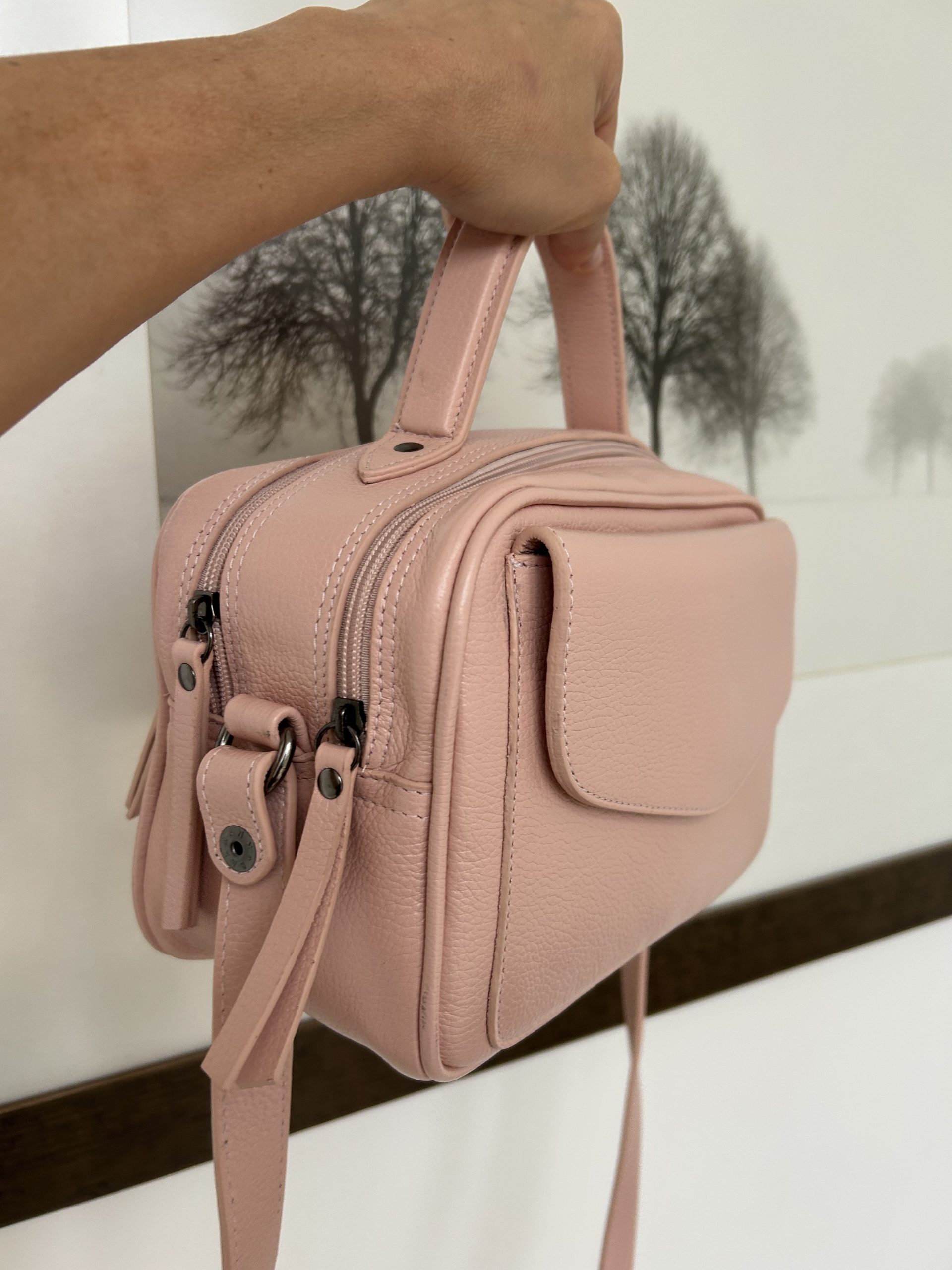 bolsa de couro baú feminina Manuela Nude rosado